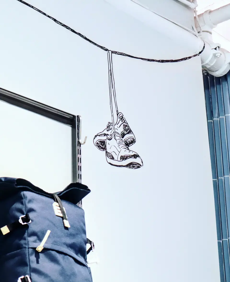 At ONS Clothing in the Nolita neighborhood of NYC, Zac's urban sketches come alive in a mural that reflects the brand's fashion, captures authentic NYC street scenes, while playfully interacting with the surrounding space.